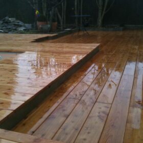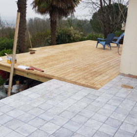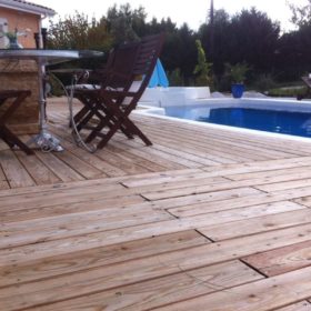 Lames de terrasse en Douglas retaillé par l’artisan poseur